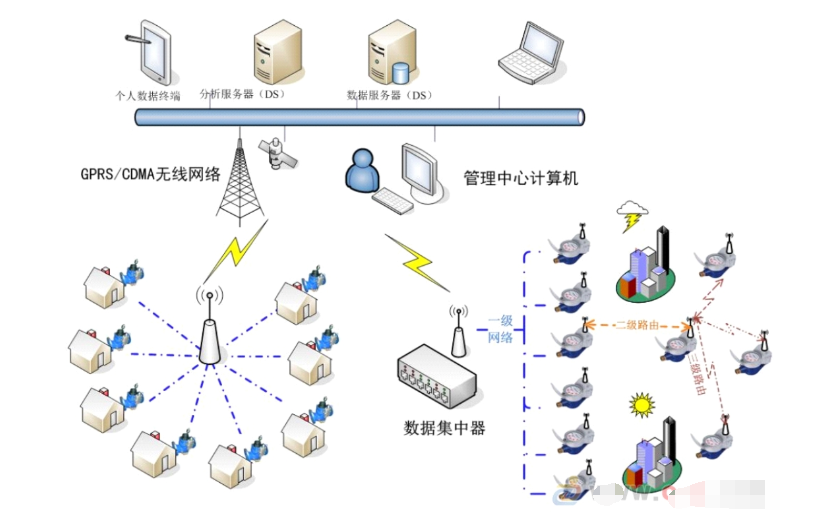 此技術使用無線水表,每塊水表作為一個終端的前提下作為中繼器,開啟自動路由功能。為其他比較遠的水表提供中繼服務。