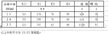 | 口徑(DN)mm | 純水表 | 15 | 20 | 25 |