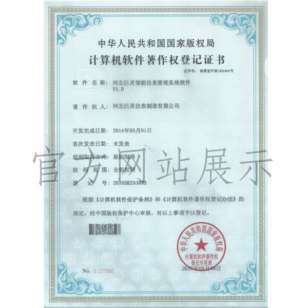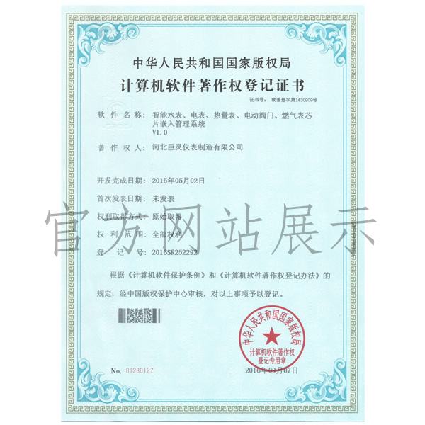 我公司開發的儀表配套軟件“智能儀表管理系統”和“芯片嵌入管理系統”已取得軟件著作權證書。